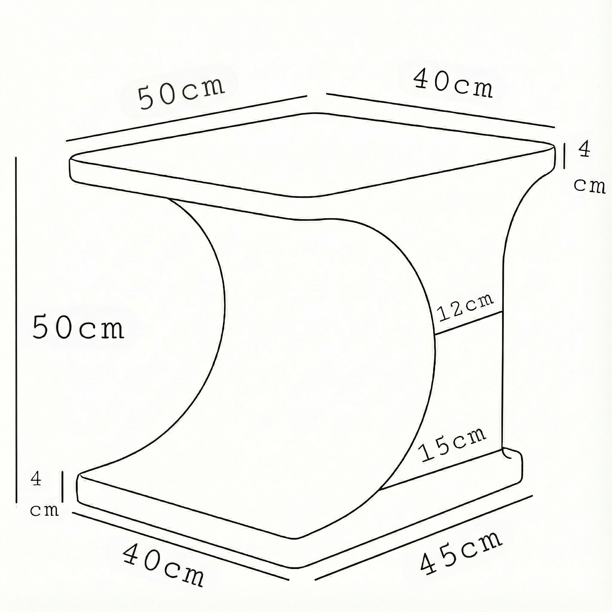 - Base: 45cm (length) × 40cm (width) × 5cm (thickness)
