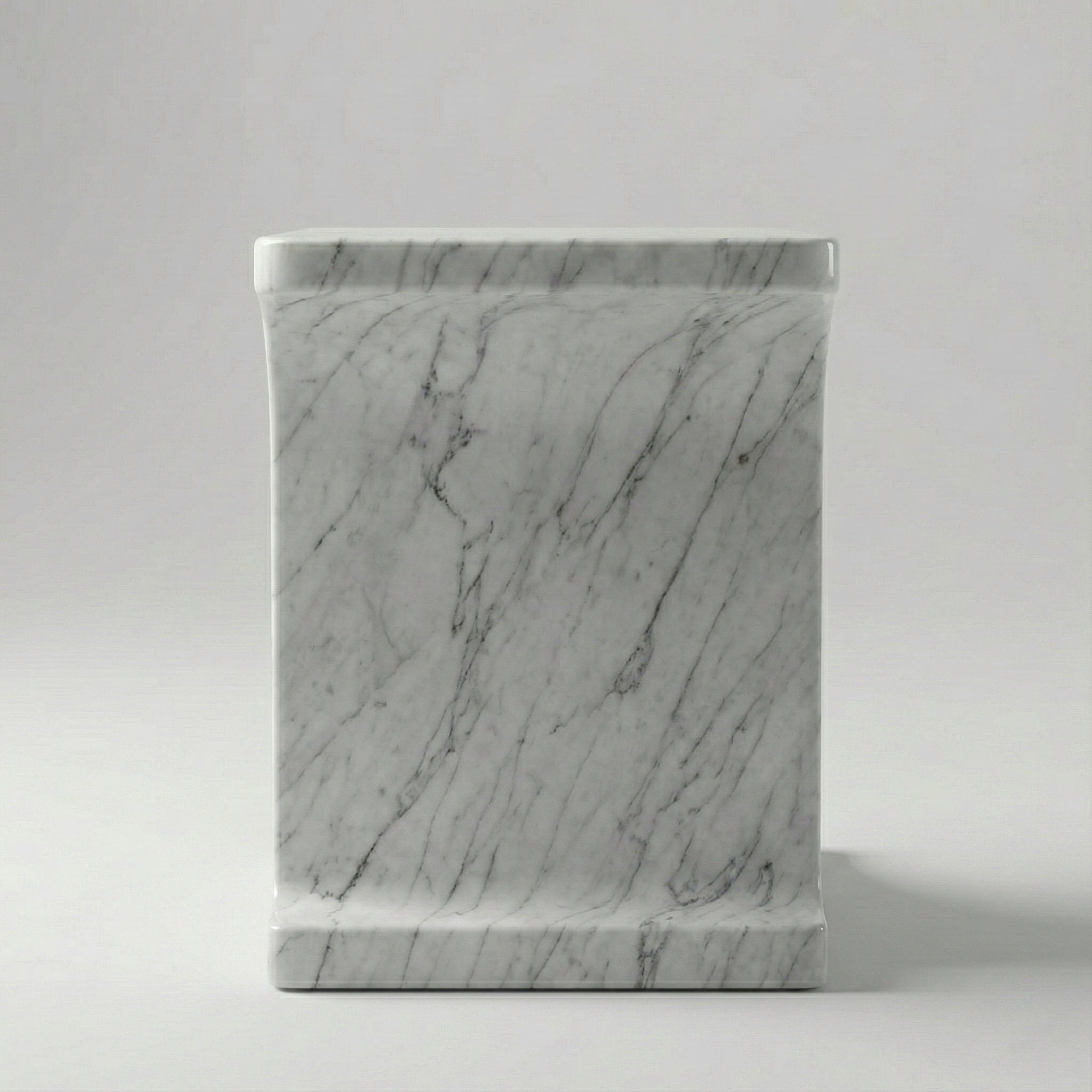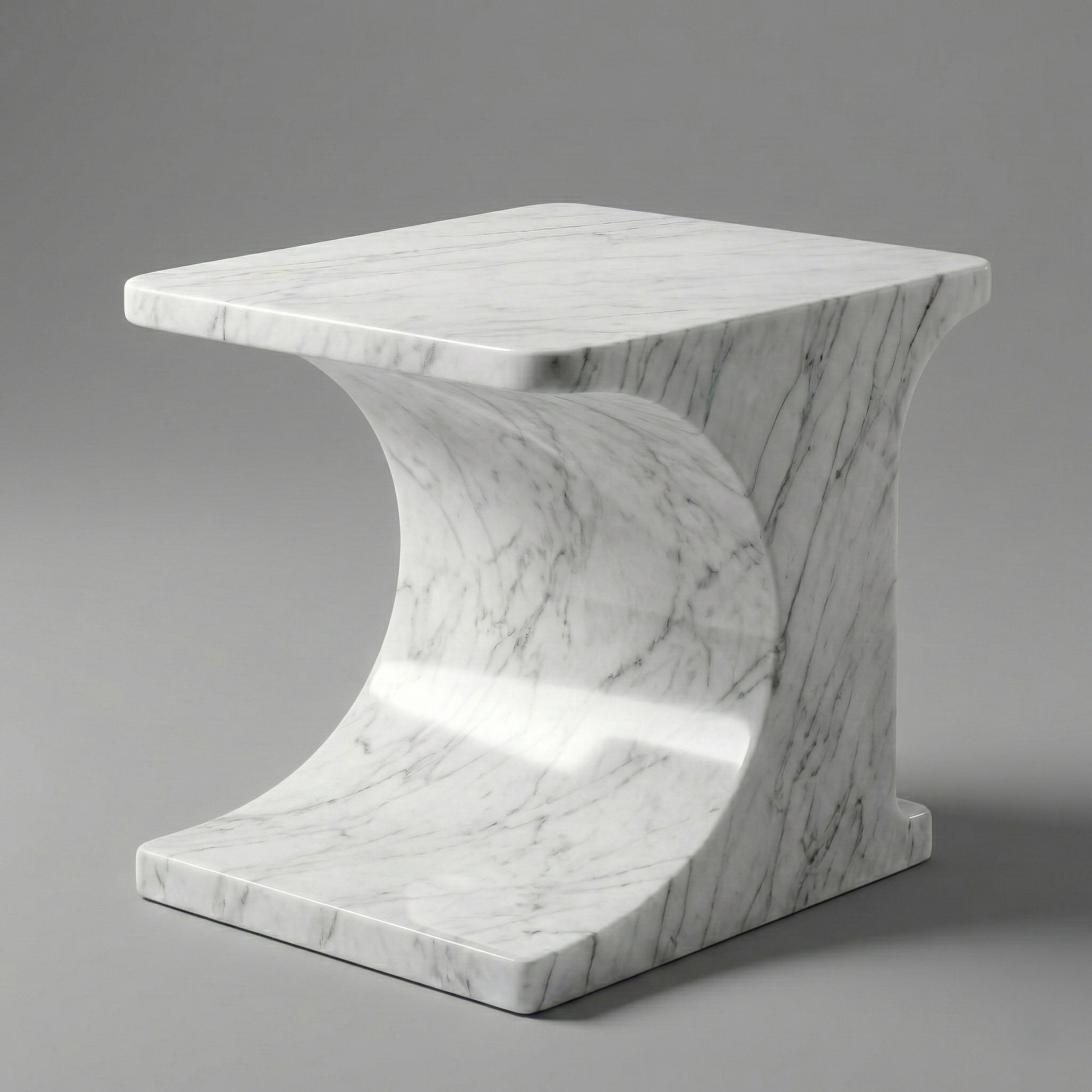 A bold fusion of sculptural elegance and functional design, the Eclipse Marble Side Table is a statement piece that embodies movement, balance, and modern luxury. Crafted entirely from white Carrara marble, its fluid curved silhouette seamlessly connects the tabletop to its sturdy base, creating a striking presence in any interior.