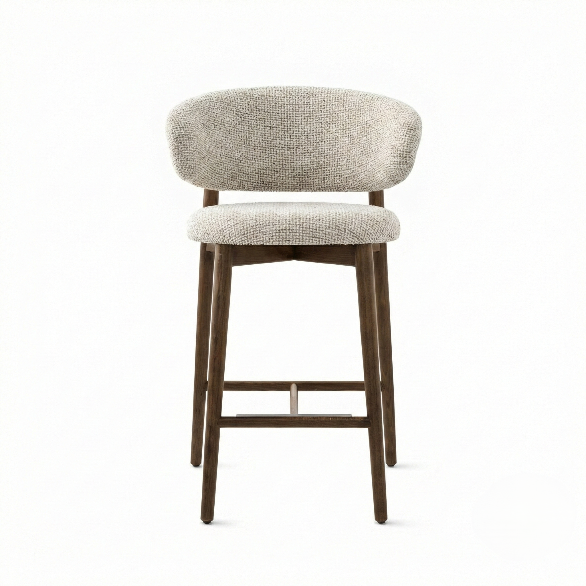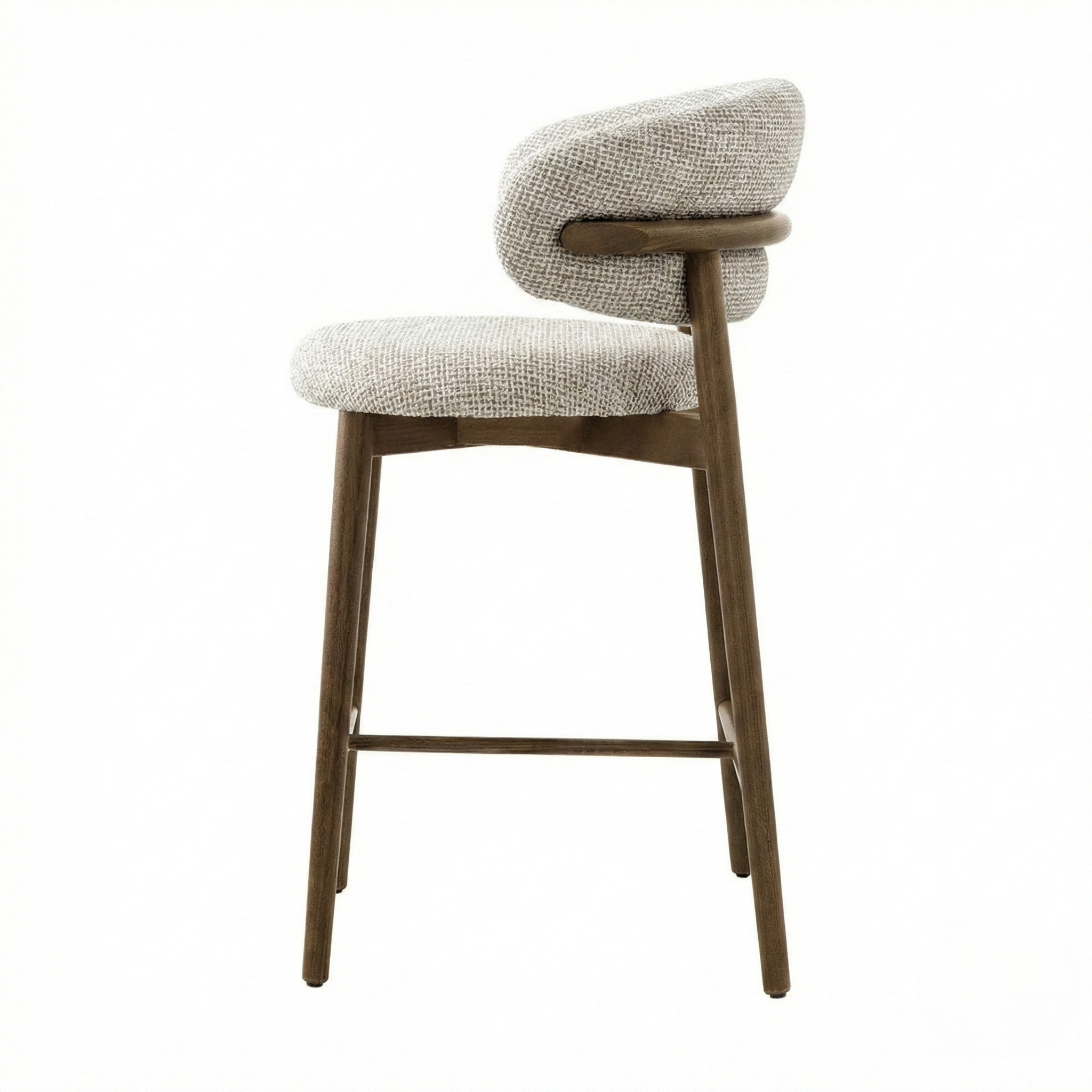 A refined balance of comfort and structure, the Elio Curved Backrest Linen Bar Stool brings understated mid-century character to contemporary interiors. Upholstered in softly textured grey linen and supported by a solid wood frame, its sculpted silhouette offers both visual warmth and everyday practicality.