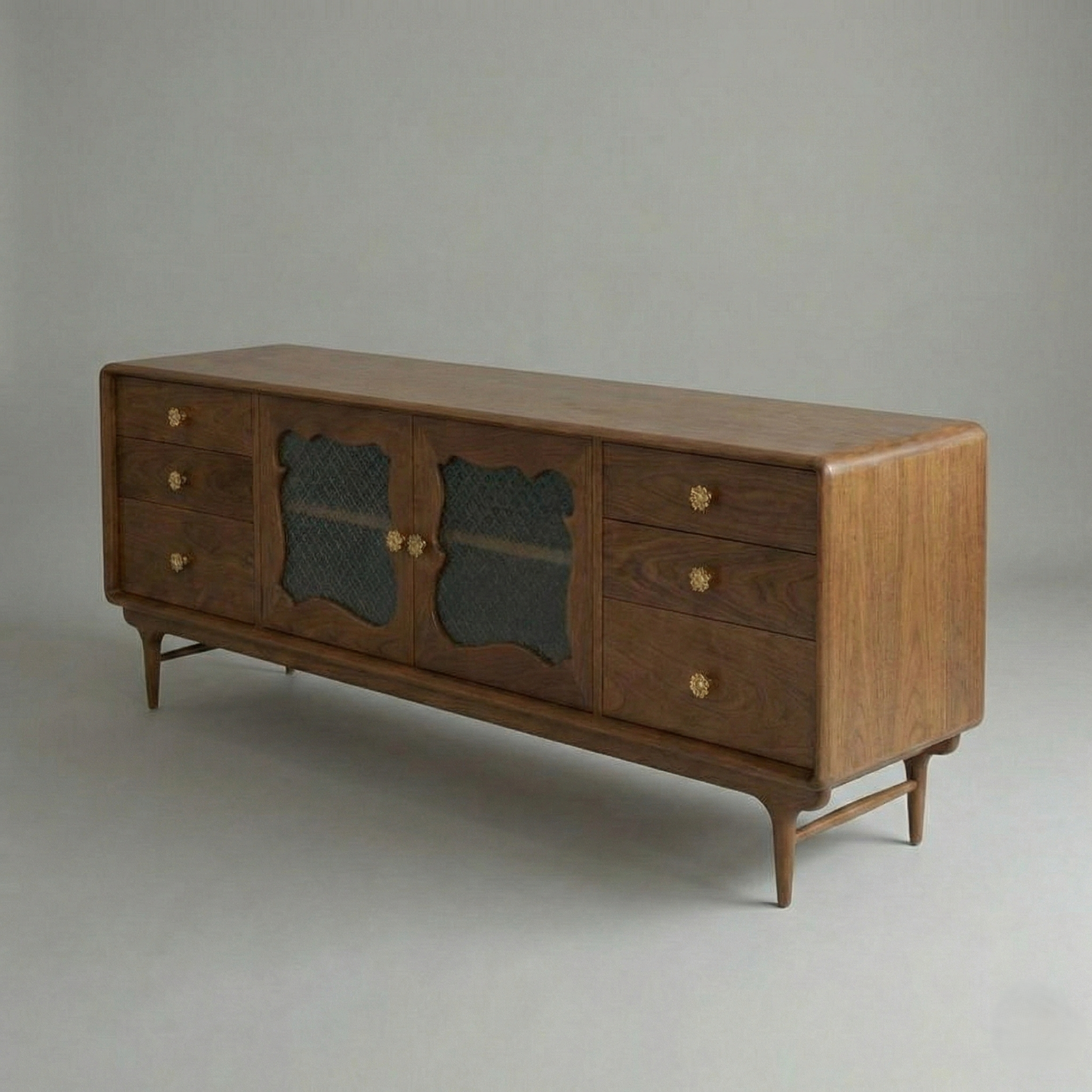 The Garcelle French Retro Brass TV Cabinet combines the timeless elegance of solid cherry wood, red oak, and glass with practical functionality. With its sophisticated French-inspired design and premium materials, this cabinet brings warmth and character to any living room or entertainment space.