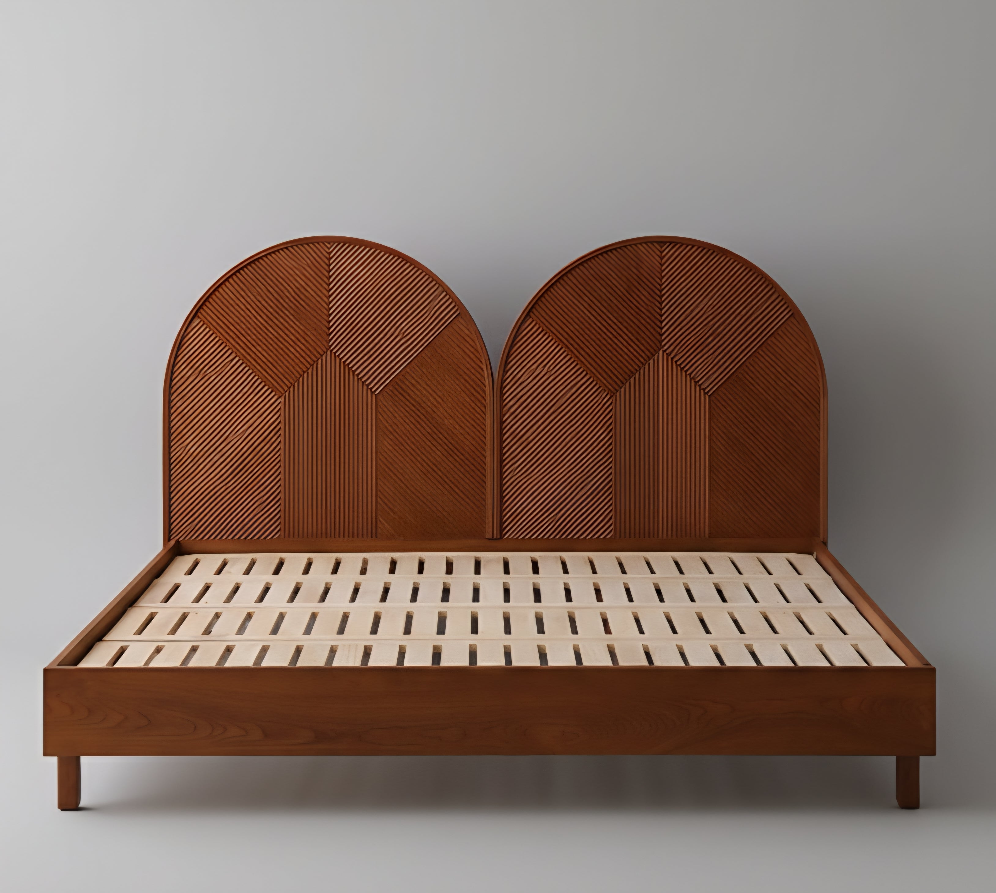 Bring warmth and natural character into your bedroom with the Bali Platform Bed. Crafted from solid cherry wood and detailed with a beautifully arched fluted headboard, this design merges refined craftsmanship with organic elegance. Its mortise and tenon joinery ensures lasting durability, while the low-profile frame adds a timeless modern balance to any interior.