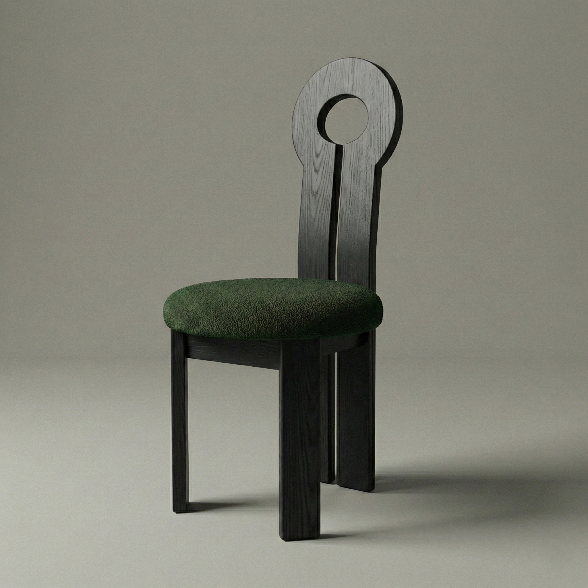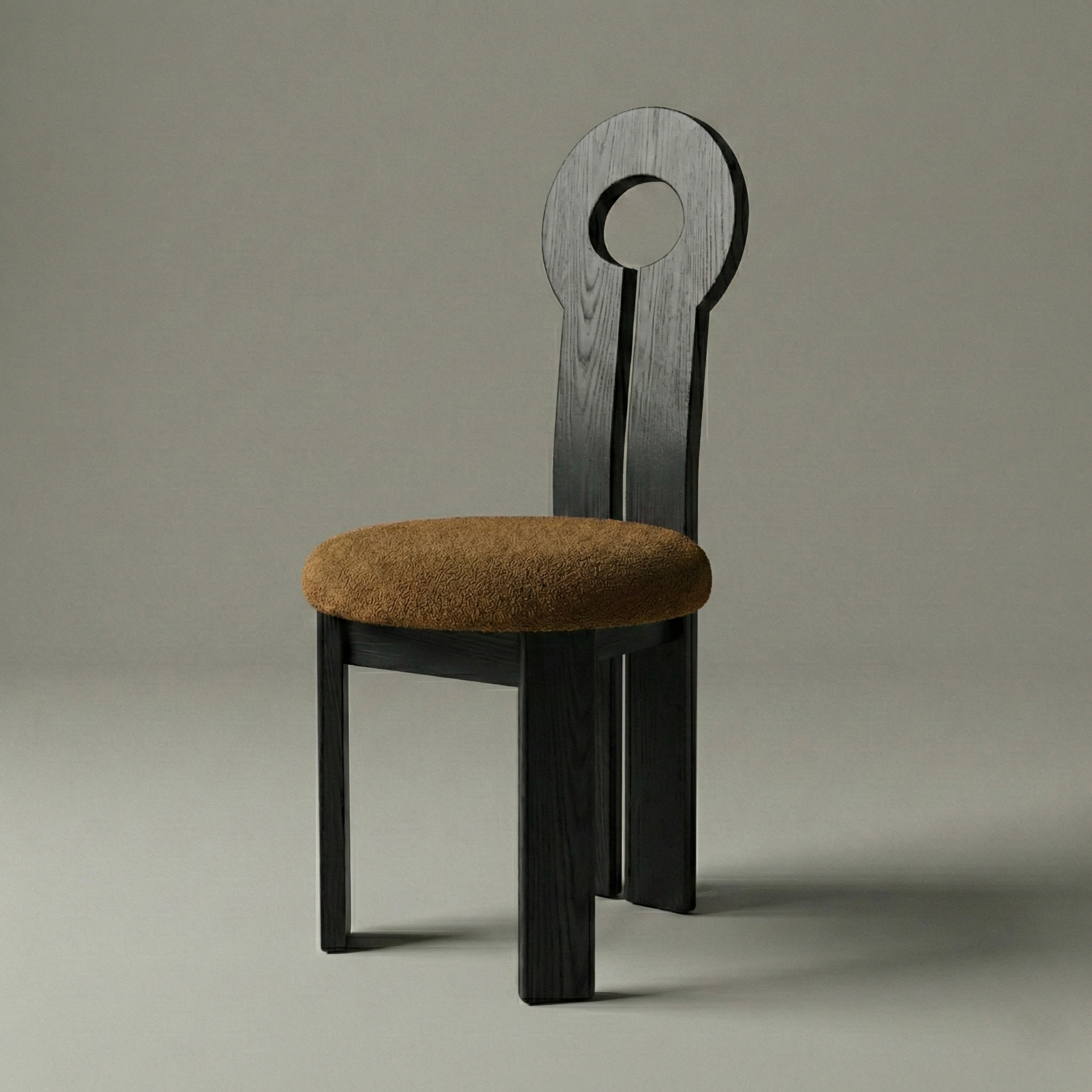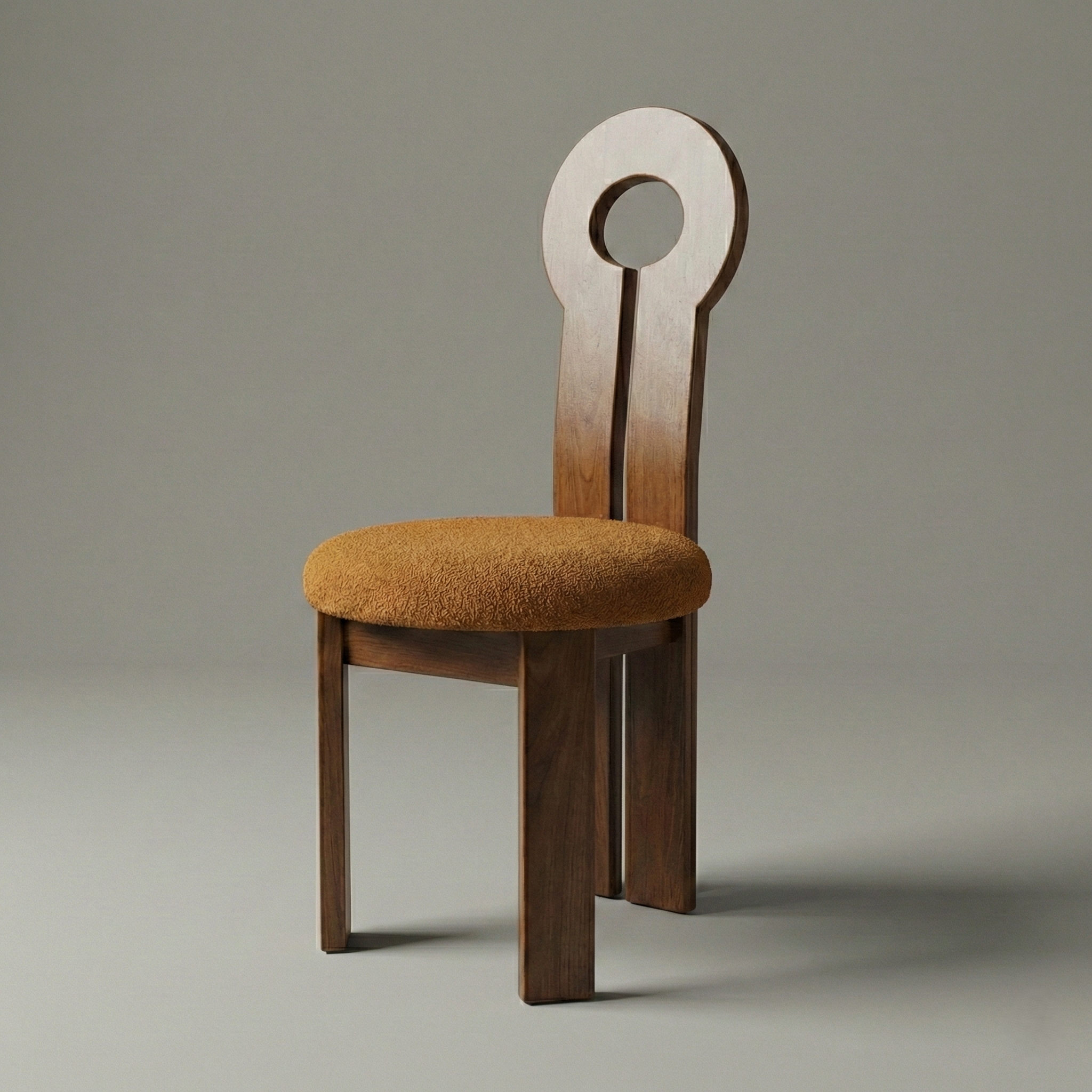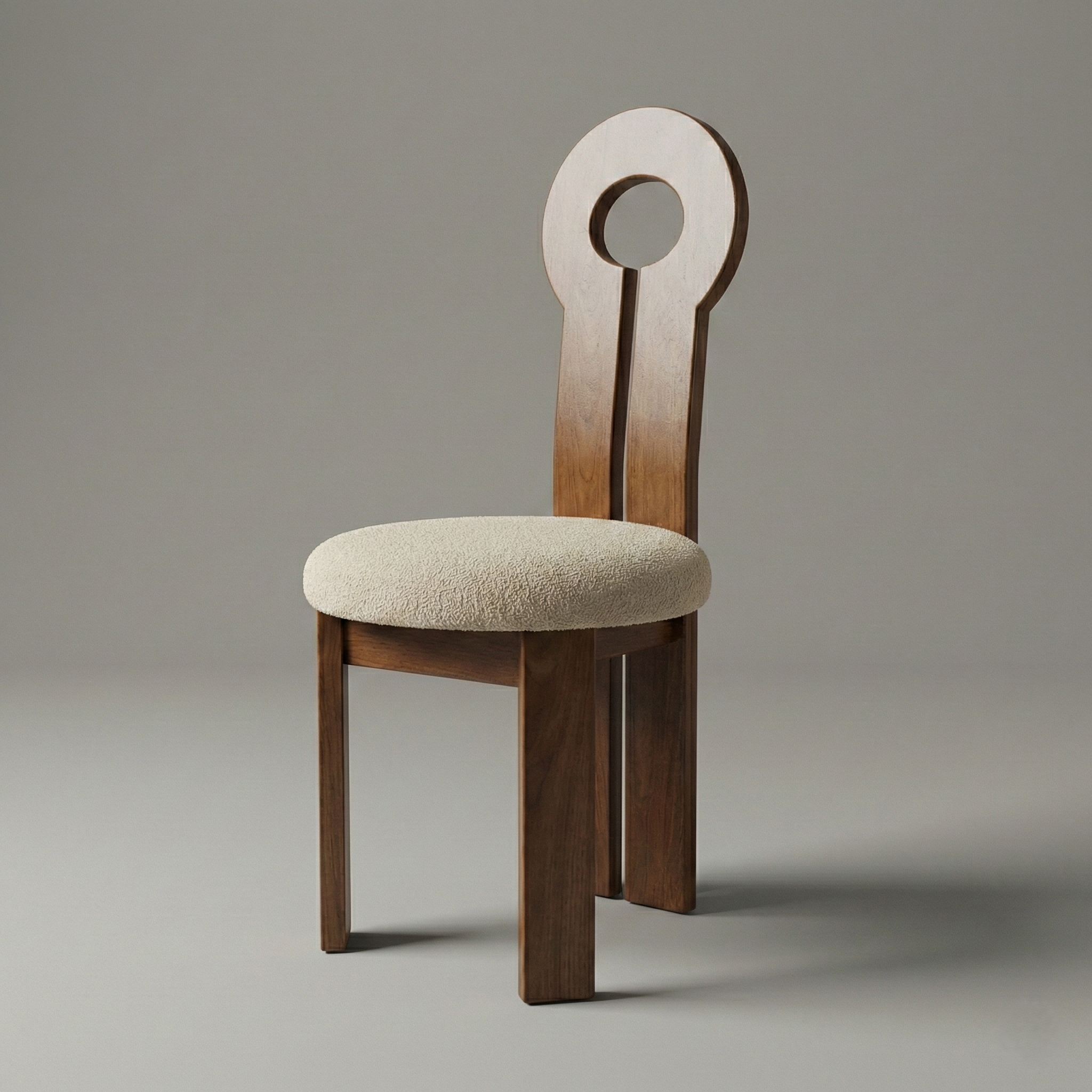 The Keyhole Walnut Dining Chair combines timeless elegance with contemporary comfort. Featuring a distinctive keyhole backrest carved from rich walnut wood and a plush neutral fabric seat, this sophisticated dining chair adds architectural interest to any table setting.