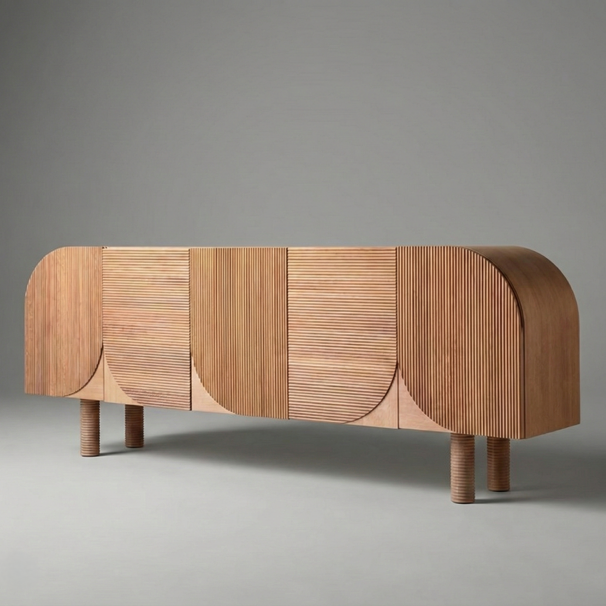 Crafted from solid walnut wood, the Retro Walnut Arc TV Cabinet blends timeless elegance with modern functionality. Featuring a smooth, curved silhouette and seamless wood grain, this piece adds warmth and sophistication to any living space. Designed for both style and practicality, it offers ample storage while maintaining a sleek, minimalist aesthetic.