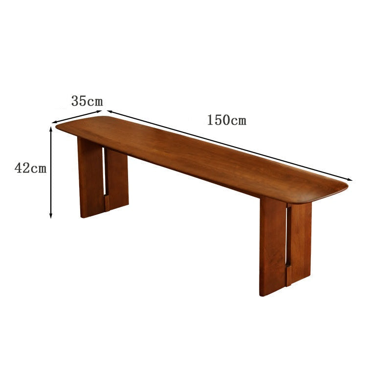 The Solene cherry wood retro bench stool combines streamlined minimalism with mid-century inspiration. This elegant 150cm statement piece features a rich cherry finish and distinctive geometric base, offering versatile seating that brings architectural presence and natural warmth to contemporary dining spaces, entryways, or living areas