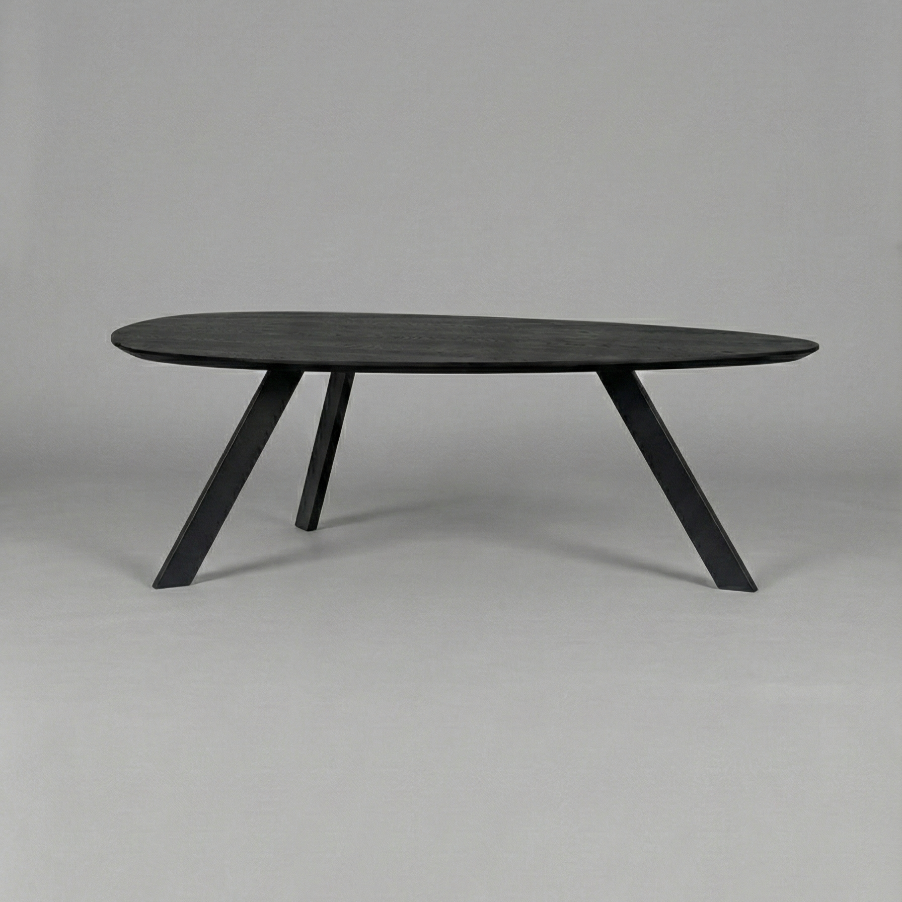 A softly contoured “skinny pebble” top and splayed timber legs give Colette a calm, modern presence. The organic shape invites easy conversation while the slim profile and rounded edges keep dining spaces feeling light and refined.