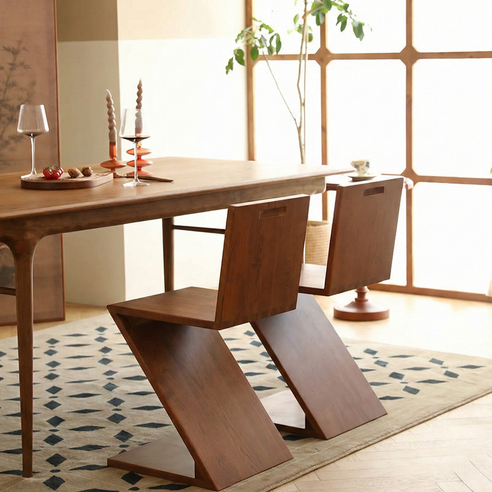 The Zeno Solid Wood Chair – Geometric Design blends bold geometric design with vintage charm. Crafted from rich wood, its sleek angular silhouette adds a statement touch to any dining space. This chair perfectly balances aesthetic appeal with ergonomic support for stylish comfort.
